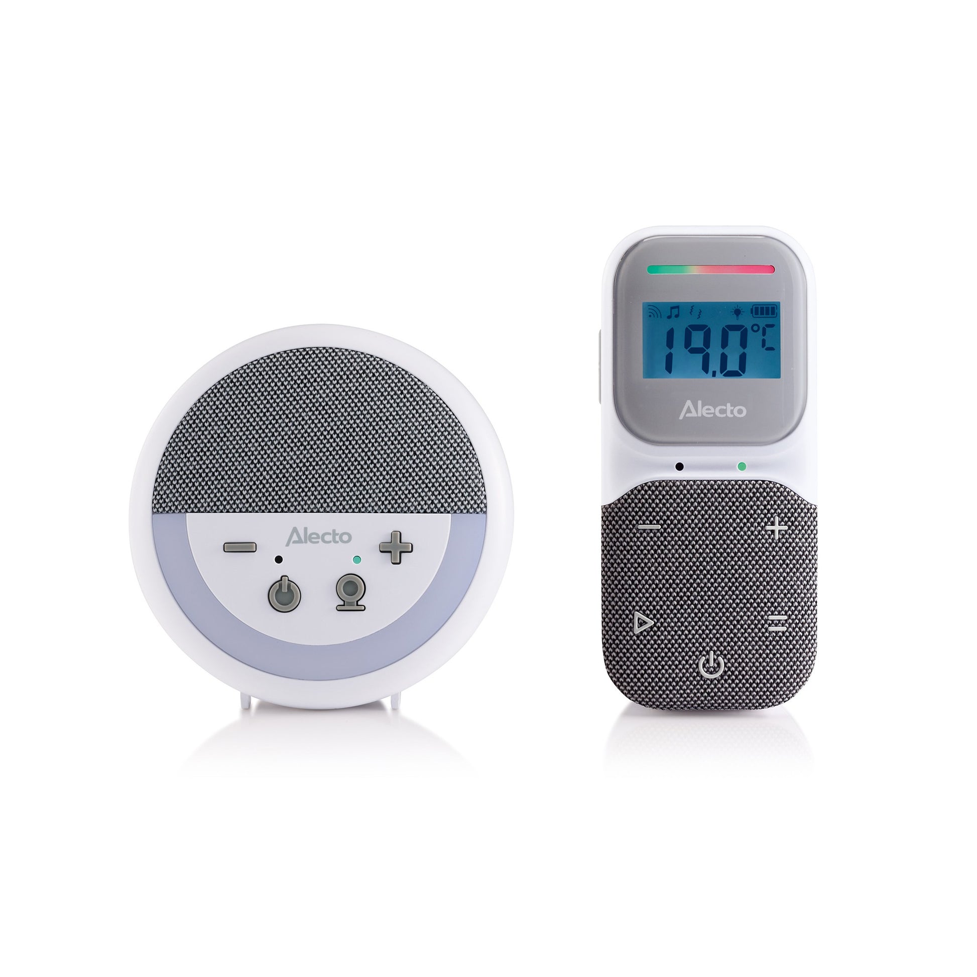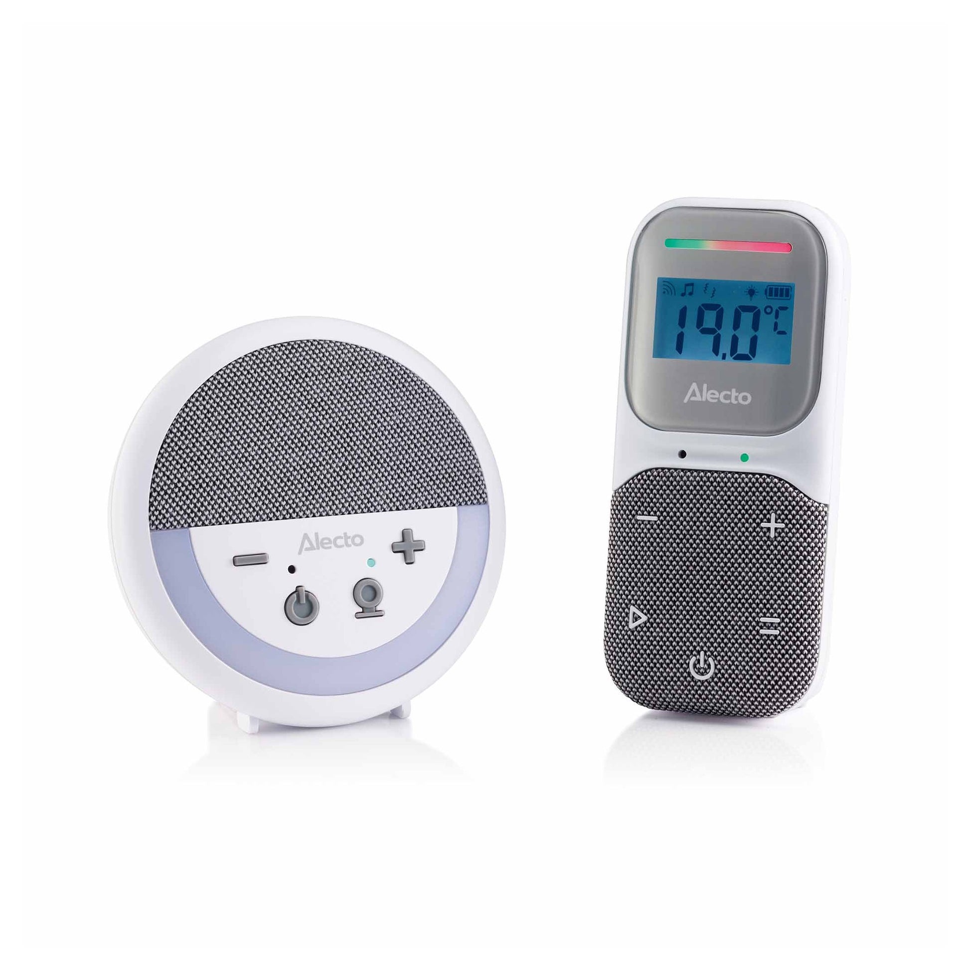 O ecrã retroiluminado a cores da unidade dos pais apresenta informações importantes como a temperatura e humidade do quarto, com possibilidade de alarme. As luzes LED indicadoras do nível de som permitem monitorizar o bebé mesmo com o volume reduzido, enquanto a comunicação bidirecional (talk-back) possibilita acalmá-lo com a sua voz à distância.