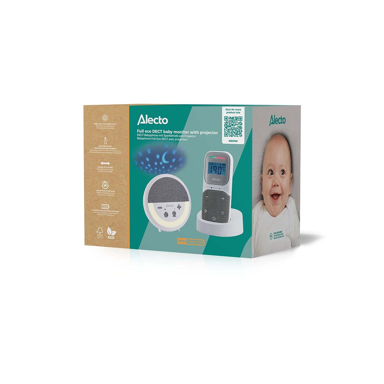 O Monitor de Bebé DECT DBX150, é um intercomunicador moderno, completo e fiável, pensado para oferecer máxima tranquilidade aos pais. Equipado com ecrã claro, projetor de estrelas, luz de presença e canções de embalar, permite acompanhar o bebé com conforto, segurança e funcionalidades extra que fazem a diferença no dia a dia.