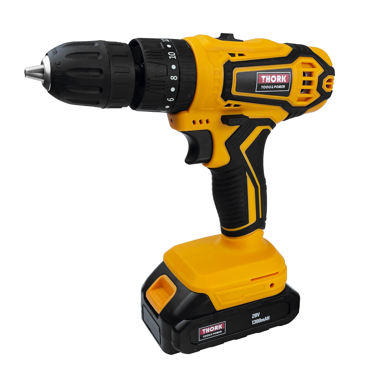 Domine qualquer tarefa de bricolage com a Aparafusadora THORK 21V, a ferramenta ideal para quem exige potência, autonomia e conforto num só equipamento. Equipada com um motor Brushed 550 e duas velocidades (0–350 / 1500 RPM), oferece o controlo perfeito tanto para apertar parafusos com precisão como para furações rápidas e eficazes em madeira ou metal.