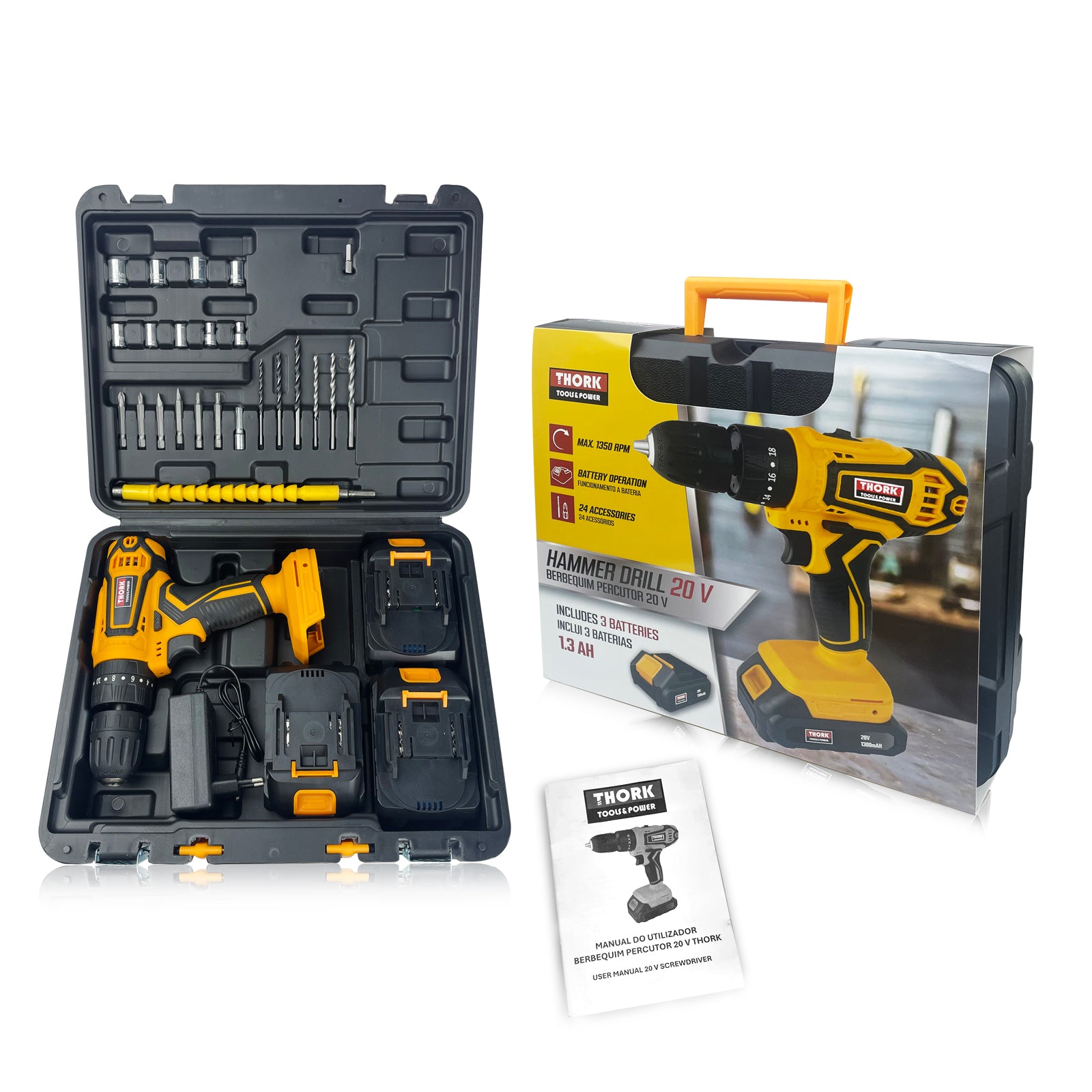 Aparafusadora com 3 Baterias + Acessórios THORK