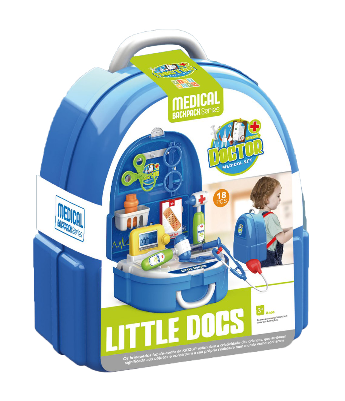Perfeita para estimular o cuidado, a empatia, a criatividade e a coordenação motora, esta mochila transforma qualquer ambiente em um consultório cheio de risadas e aprendizado.