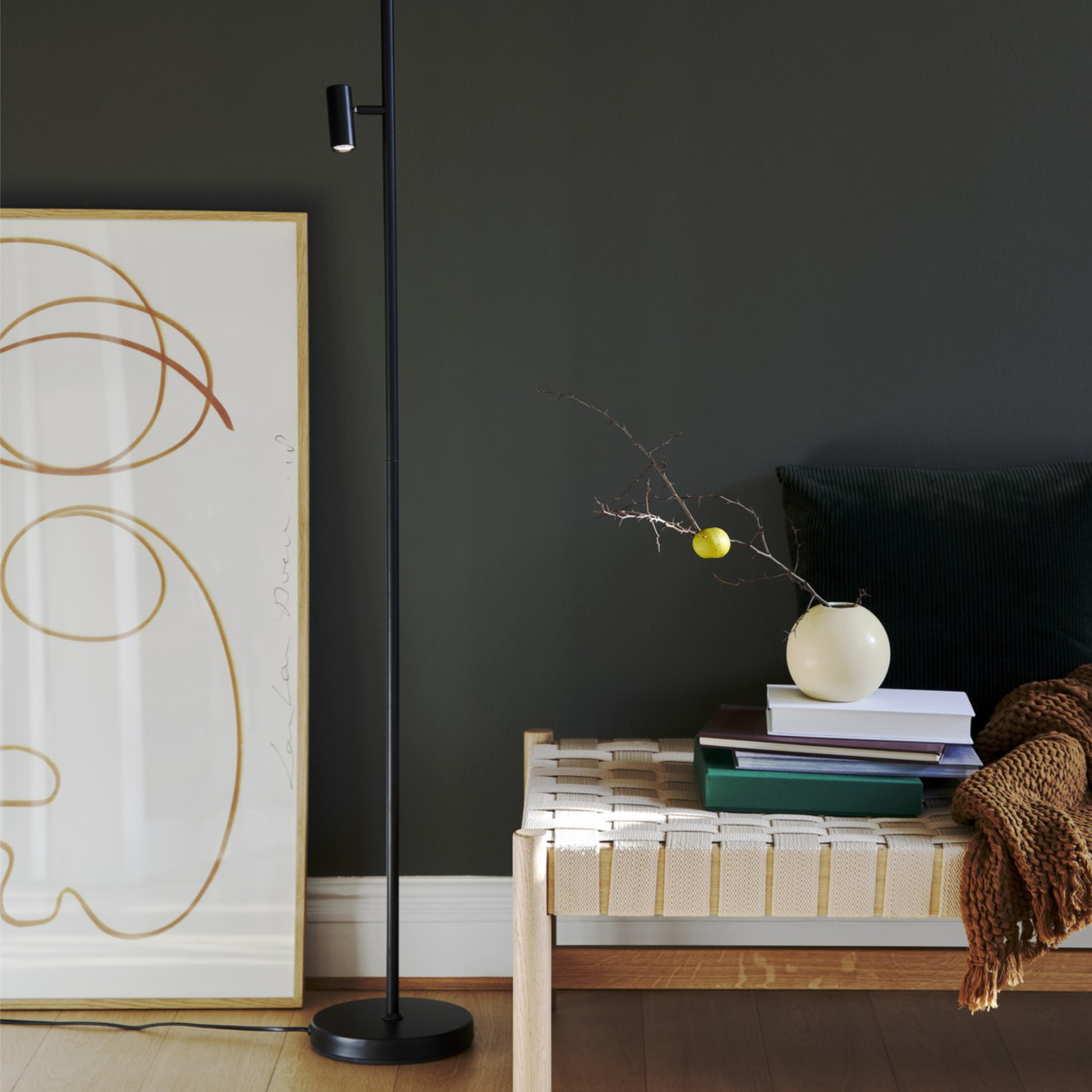 O candeeiro "Omari" transporta-nos para as tradicionais linhas nórdicas leves, limpas e simples. Este candeeiro de pé minimalista e depurado possui um interruptor tátil On/Off com regulador na cabeça do candeeiro. Coloque-o num canto acolhedor ou em qualquer outro espaço onde necessite de uma luz funcional, facilmente ajustável às suas necessidades.