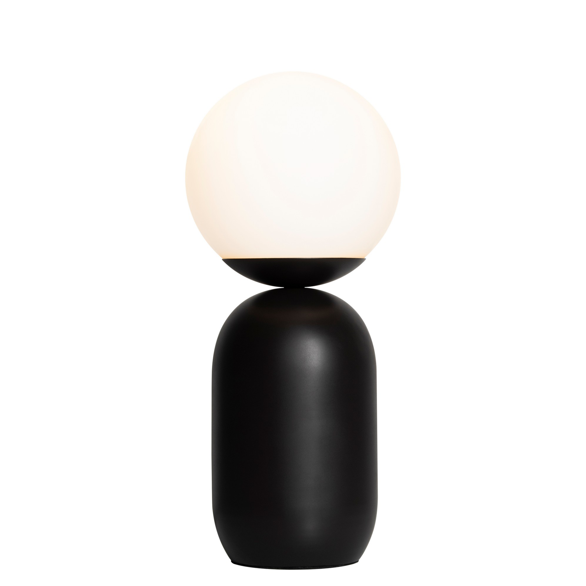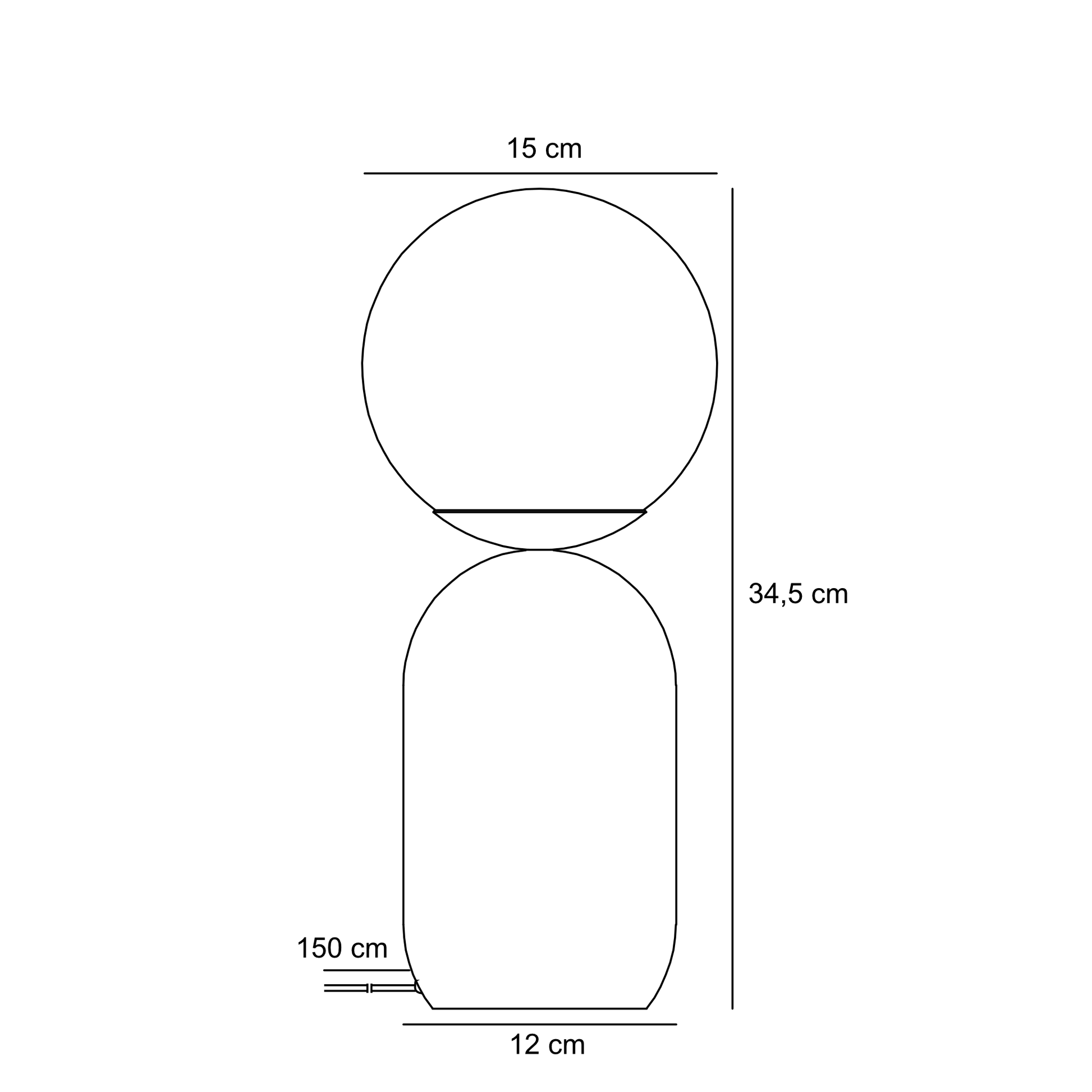 A forma orgânica resulta num elegante candeeiro de mesa com um design refinado. A base em metal mate cria um contraste interessante com a cúpula em vidro branco opalino, que acrescenta volume visual e proporciona uma luz suave e sem encandeamento.