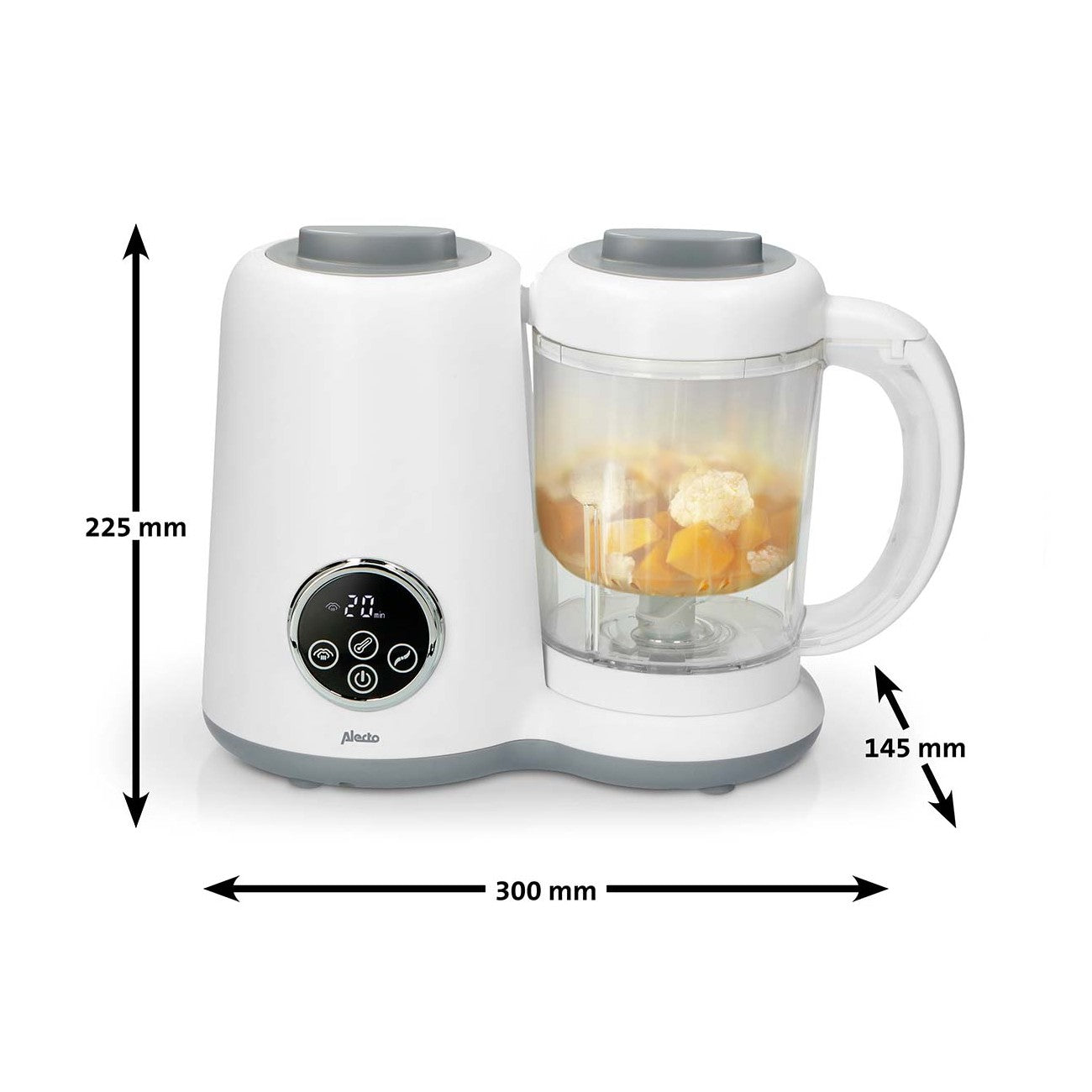 Além de versátil, é também fácil de limpar, com acessórios laváveis na máquina de lavar loiça (exceto o copo da liquidificadora). Com este equipamento, preparar refeições frescas, biberões ou esterilizar acessórios torna-se rápido e sem complicações, mesmo nos dias mais exigentes.