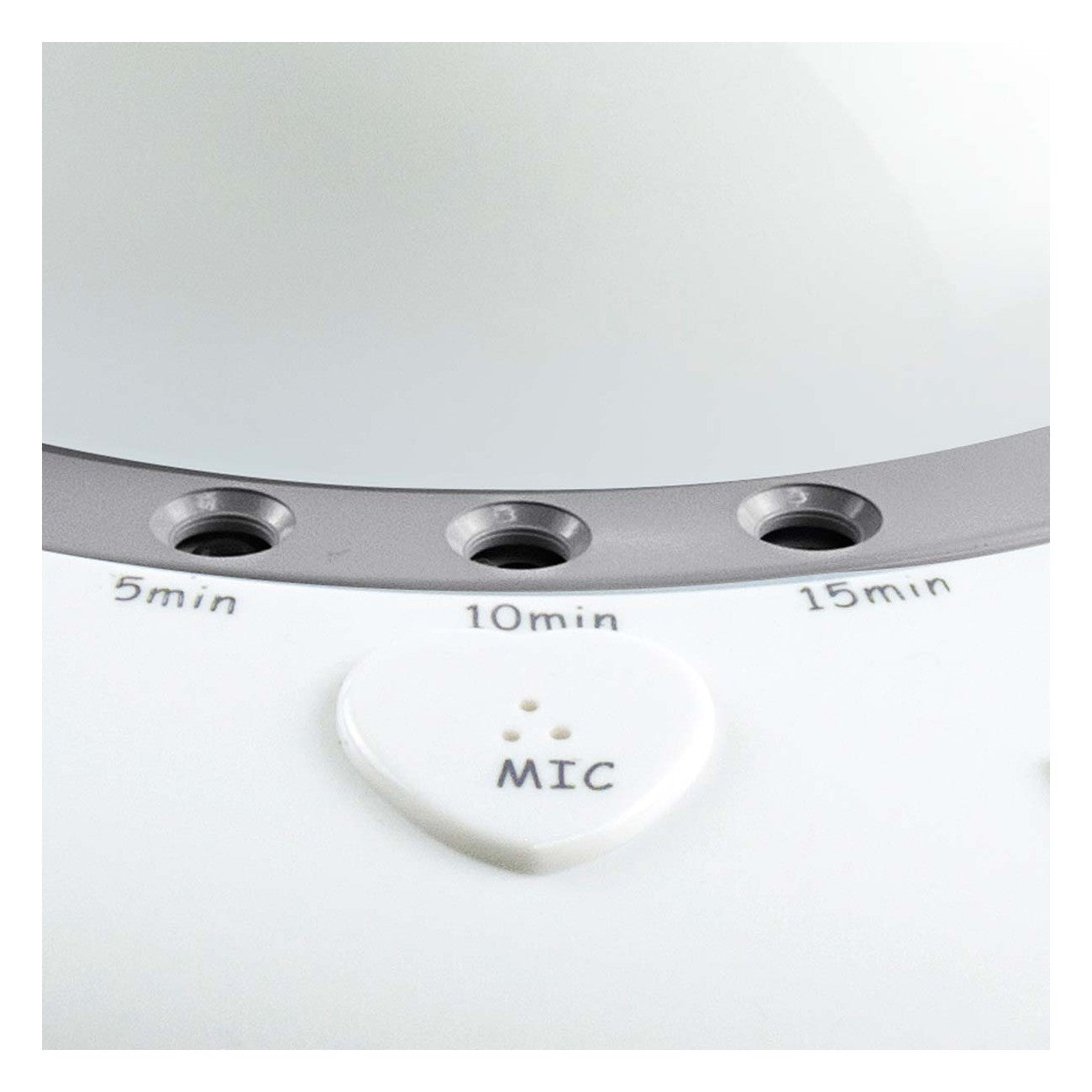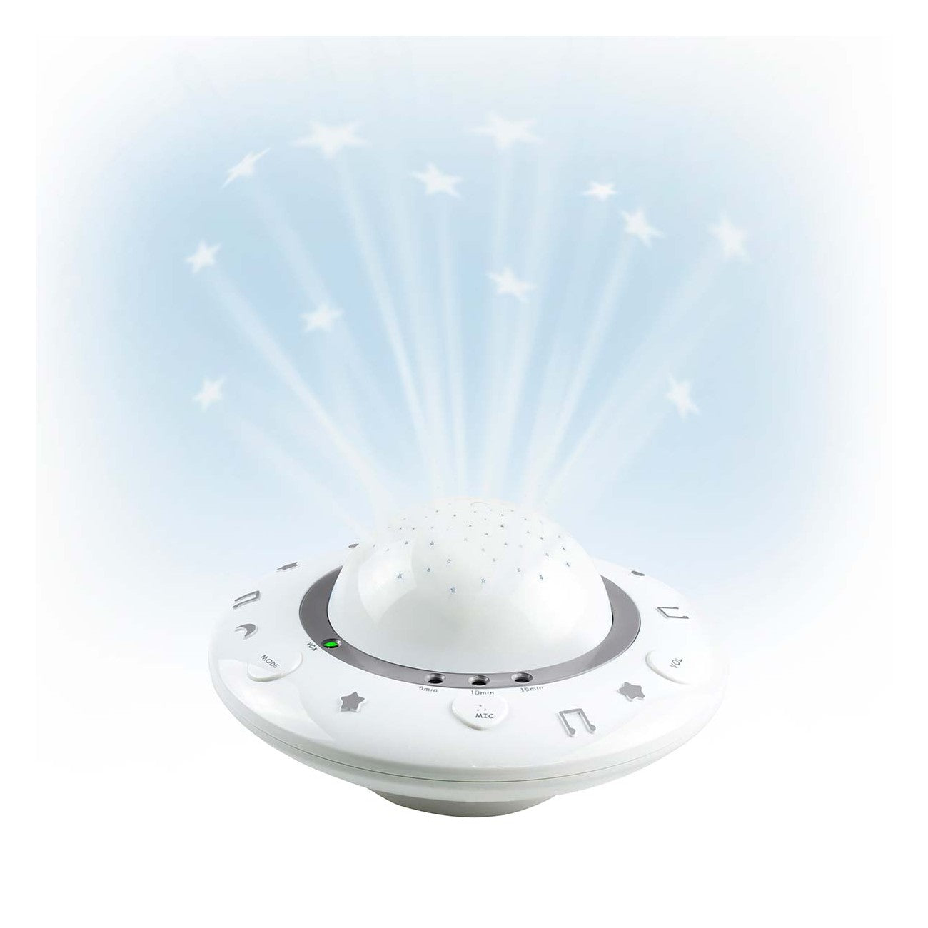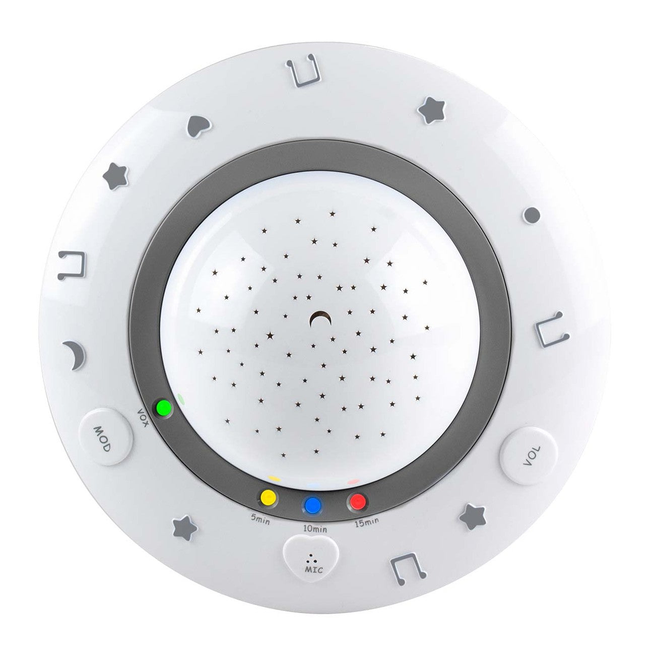Dispõe ainda da prática função VOX (ativação automática por som). Após ligado, o aparelho inicia imediatamente a projeção e a música, podendo ser programado para 5, 10 ou 15 minutos de funcionamento. Quando o tempo termina, o dispositivo desliga-se automaticamente. Caso o bebé volte a emitir sons, o projetor reativa-se sozinho, retomando a música e a projeção para o acalmar novamente.