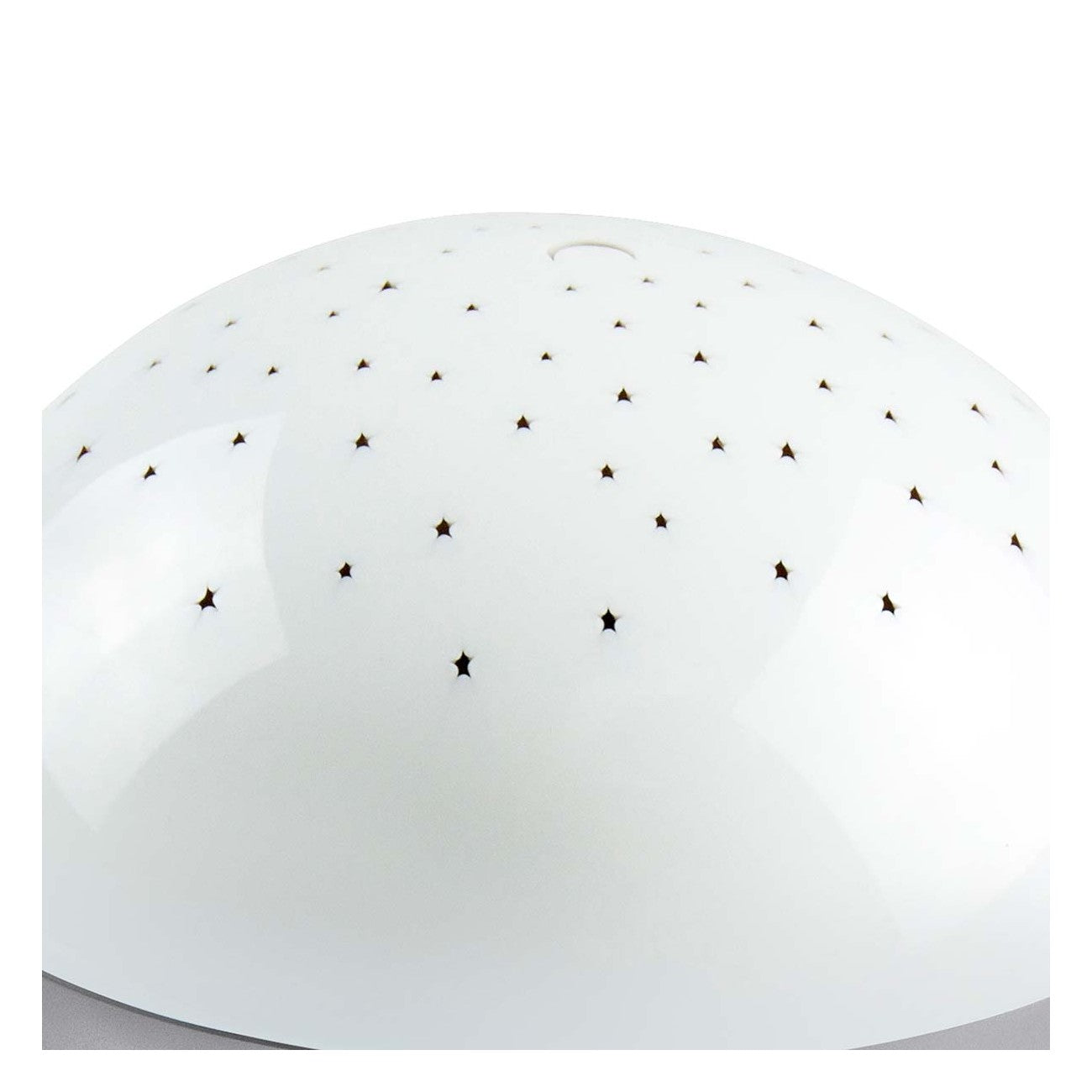 Este elegante aparelho funciona como projetor de teto e luz noturna, difundindo uma luz suave enquanto as canções de embalar tocam discretamente em segundo plano. Esta combinação ajuda o bebé a relaxar e a criar uma rotina de sono mais regular.