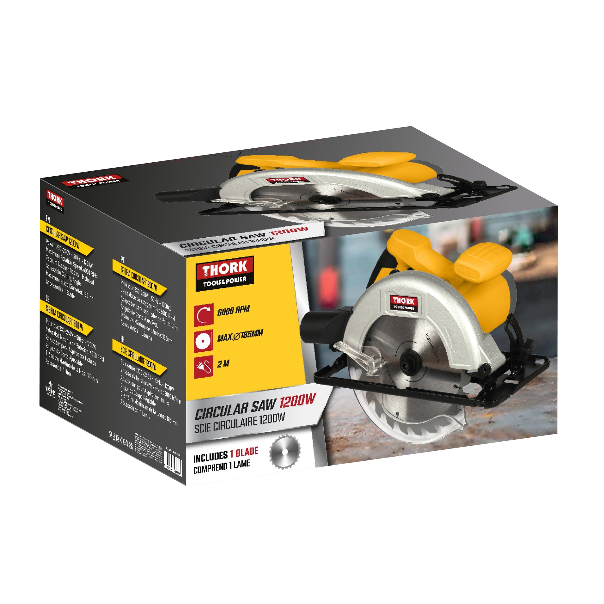Ideal para uma utilização regular para efetuar cortes longos e rectos em materiais espessos, como ripas, bancadas, etc. A máquina é fácil de utilizar graças à sua pega confortável. A profundidade e o ângulo de corte são facilmente reguláveis sem ferramentas. Inclui também uma lâmina de madeira de 24 dentes para um corte rápido. Potência: 1350W. Tensão de entrada AC: 220-240V. Frequência de entrada CA: 50/60Hz. Diâmetro da lâmina (em mm): 185mm. Capacidade de corte em madeira a 90° (em mm): 62mm. RPM: 6000. Adaptador de aspiração: Sim. Número de velocidades: 1. Bloqueio da lâmina: Sim. Ângulo de corte (em °): 45° Capacidade de corte em madeira a 45° (em mm): 48mm. Altura de corte a 90° (em mm): 62mm. Tipo de lâmina: Aço. Tamanho da lâmina (em mm): 185mm. Diâmetro interno (em mm): 20mm